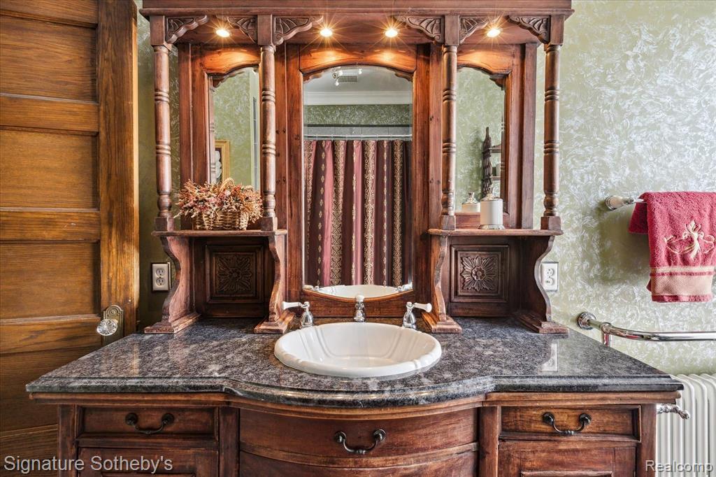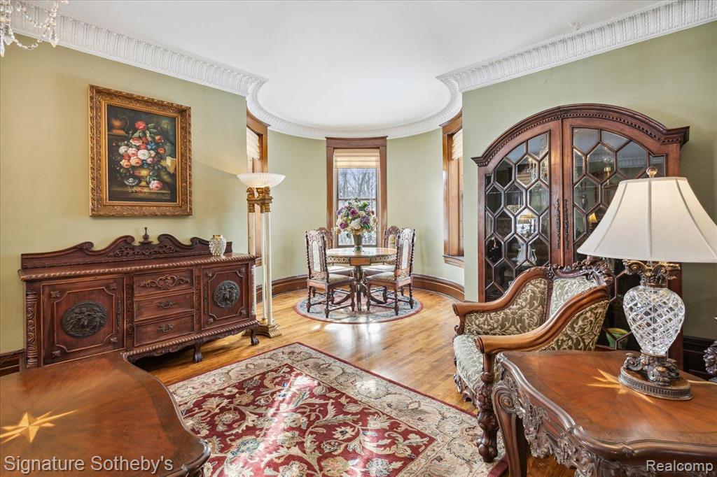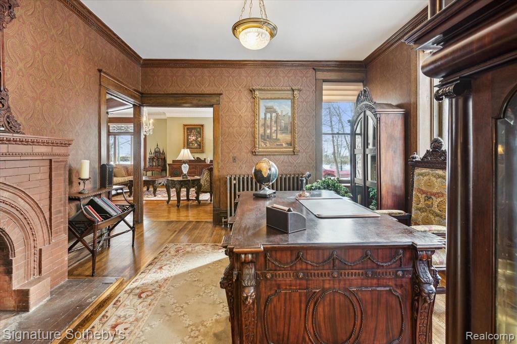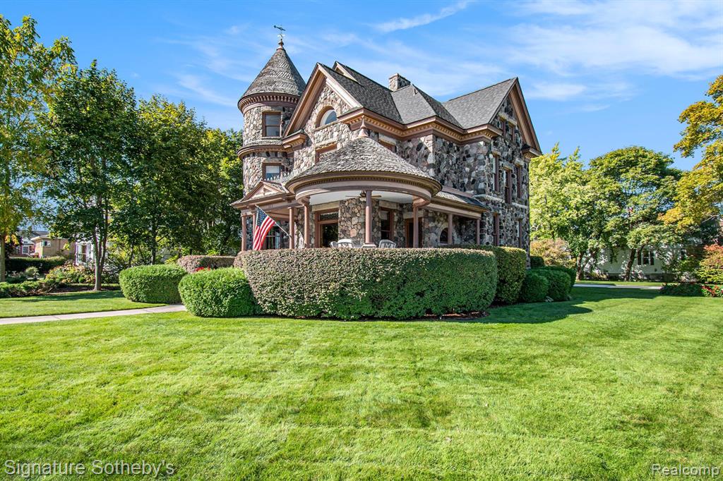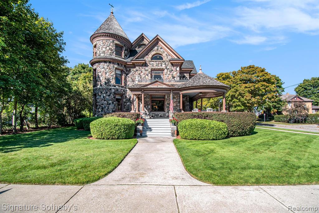 THE CASTLE, like no other! Fully furnished. This property is being sold Turnkey w/hand carved solid wood furniture, artwork, area rugs, & lamps included in sale. Extraordinary with unsurpassed artistry, prime location within the City of Alpena, Michigan w/gorgeous Lake Huron views. The Castle embodies timeless architecture w/the preservation design for present day lifestyles. Enjoy a piece of history w/this restored stunning Victorian stone home, featuring ornate woodwork, leaded glass windows, & wraparound porch. The home originally built for Charles Henry, a Michigan State Senator in 1902. The original design was based on architect H.H. Richardson’s Victorian Romanesque style. The interior design was done by Marshall Fields of Chicago, Il ,who hired an artist from New York to paint oil on canvas murals on all the dining room walls. Convenient to this location is the municipal owned waterfront boat harbor across the street featuring rental boat slips, as well as tennis courts, park, band shell, & public beach. Alpena is also home to the Thunder Bay National Marine Sanctuary & Underwater Preserve consisting of 4,300 square miles. Note the exquisite hardwood flooring thru out & leaded glass accent windows. Hand carved stairwell & cornices show the craftsmanship of that period. There are 3 unique fireplaces; in the foyer sitting room, library, & dining rm. The open flow of the great room offers a window turret area, original Waterford crystal chandelier & large entertaining space. The library with stunning carved partner desk. The dining room is off the foyer w/a beautiful hand painted oil on canvas wall mural. The kitchen is designed for contemporary living with newer cabinetry and stainless appliances. There is a breakfast area in the kitchen overlooking the elevated patio for casual outdoor dining & renovated 1st floor powder rm. Second level offers 5 bedrooms which include staged bedding. Third level is a bonus room w/plenty of extra space. BATVAI |